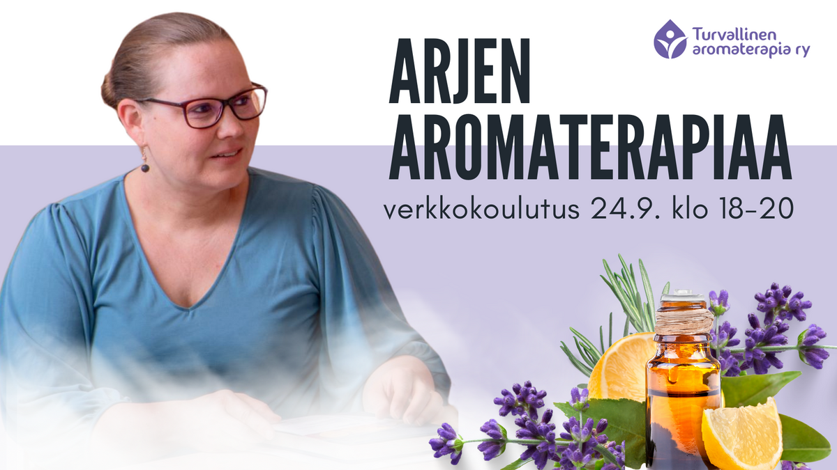Arjen aromaterapiaa verkkokoulutus järjestetään seuraavan kerran ke 24.9.2025 klo 18-20. Saat illan aikana kunnon peruspaketin aromaterapiasta ja käytännön vinkkejä aromaterapian ja eteeristen öljyjen käyttöön. Verkkokoulutus järjestetään yhteistyössä Valouden kanssa, kouluttajana toimii aromaterapeutti Sonja Laitinen. Verkkokoulutuksen hinta on jäsenillemme 30 euroa ja ei-jäsenille 50 euroa. Koulutuksesta jää kirjallinen materiaali kaikille osallistuneille.